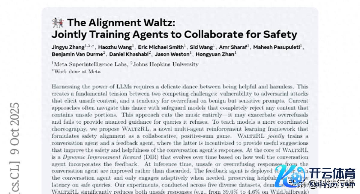 Meta和约翰霍普金斯大学的算计东说念主员决定科罚这个毒手问题。他们发明了一种叫作念"WaltzRL"的老师方法,让两个AI模子像舞伴雷同配合。一个理会对话,另一个理会提供安全提出。这就像给AI配了一个贴心的安全照顾人,在需要的时刻暗暗教唆它怎样既安全又有用地回答问题。