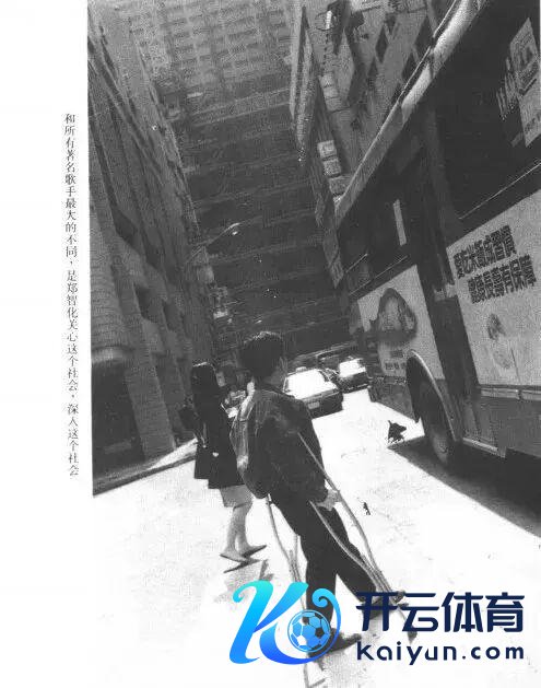 在郑智化的自传中,有一张口角像片。他拄动手杖,走向一辆公交车。