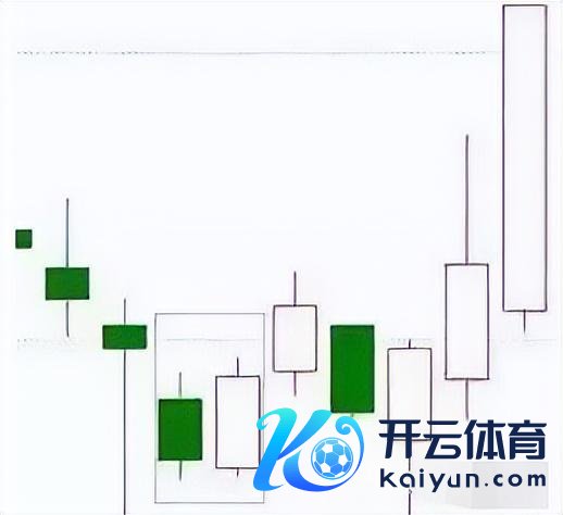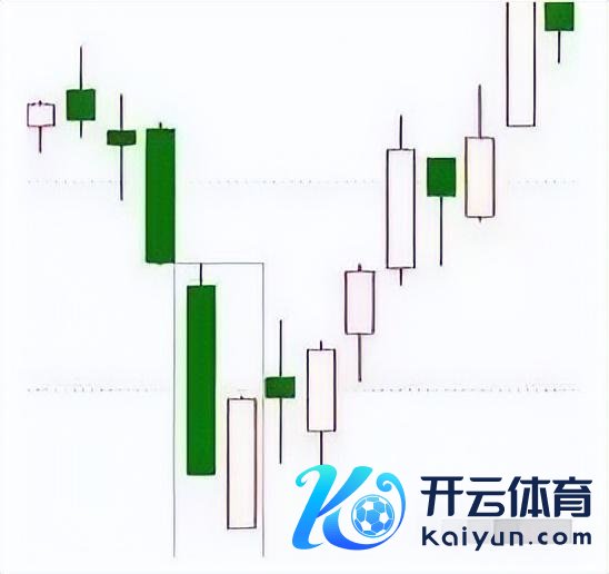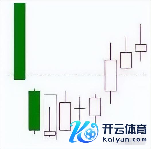 鄙人行通谈中,出现一根带长下影线的阴K线,随后又出现一根小阳线,但小阳线的实体过火影线十足被第一根阴线的长下影线吞没,若股价不息高潮能杰出前一根阴K线的实体,股价杰出实体之际就是买点。