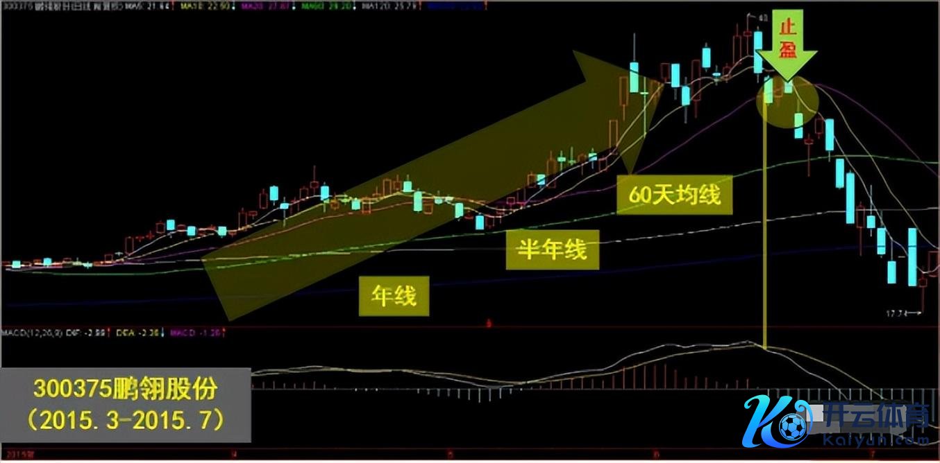 在上升行情中,均线是尾随股价上升的,一朝股价掉头击穿均线,将意味着趋势转弱,投资者要立即止盈,保住得胜果实。