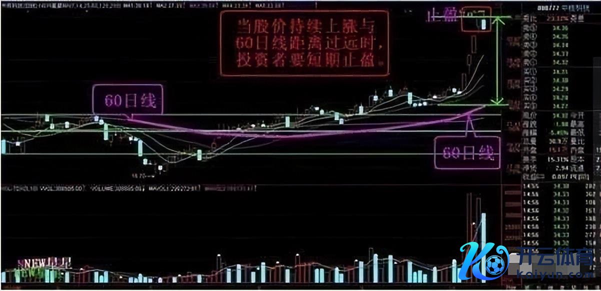 1、当股价握续高涨与60日线距离过远时,投资者要短期止盈;