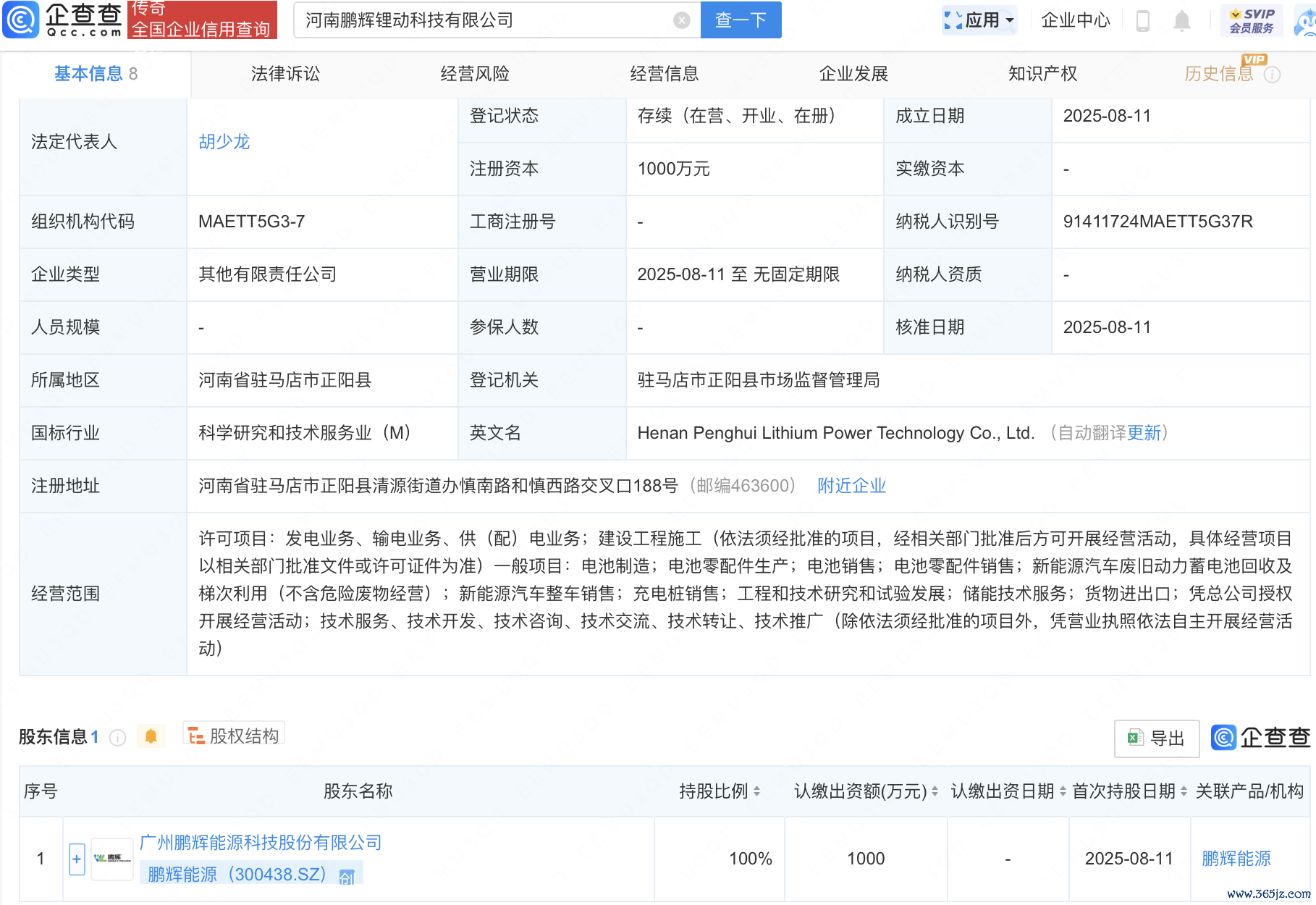 近日开云体育,河南鹏辉锂动科技有限公司设备,注册成本1000万元,目的限度包含:新动力汽车整车销售;充电桩销售;工程和时期洽商和测验发展;储能时期就业等。企查查股权穿透败露,该公司由鹏辉动力(300438)全资抓股。