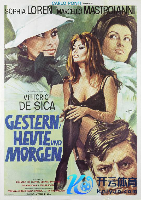 《昨日、当天、明日》(1963):索菲亚·罗兰与马塞洛·马斯特罗亚尼联袂演绎三段社会对比利弊的女性故事,以笑剧作风活泼呈现意大利社会图景,并荣获奥斯卡桂冠。
