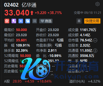 亿华通港股盘中一度暴涨超84%云开体育,现涨38%报33.04港元,亿华通A股盘中波及涨停。