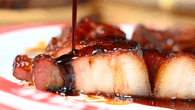 斗门叉烧以其爽直明显、脆而不韧、咸中带甜,且带有荔枝柴香的性情知名四方乡邻。